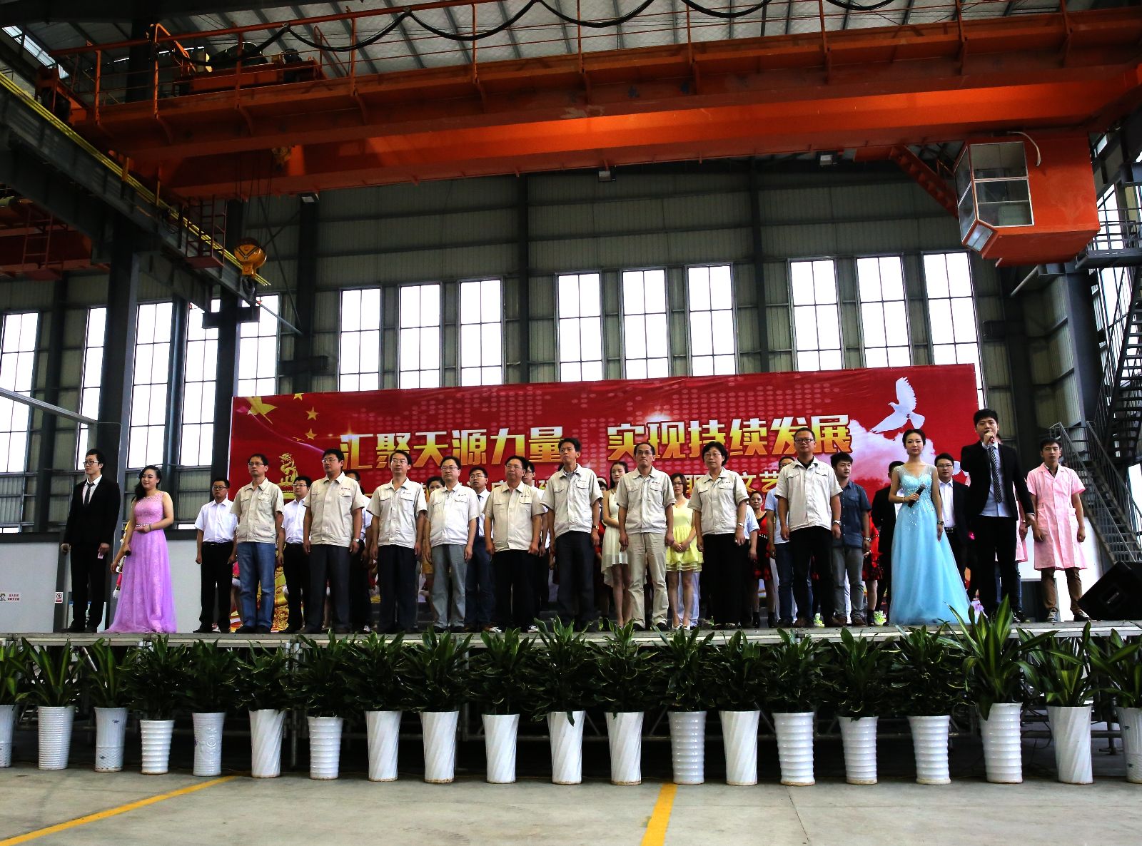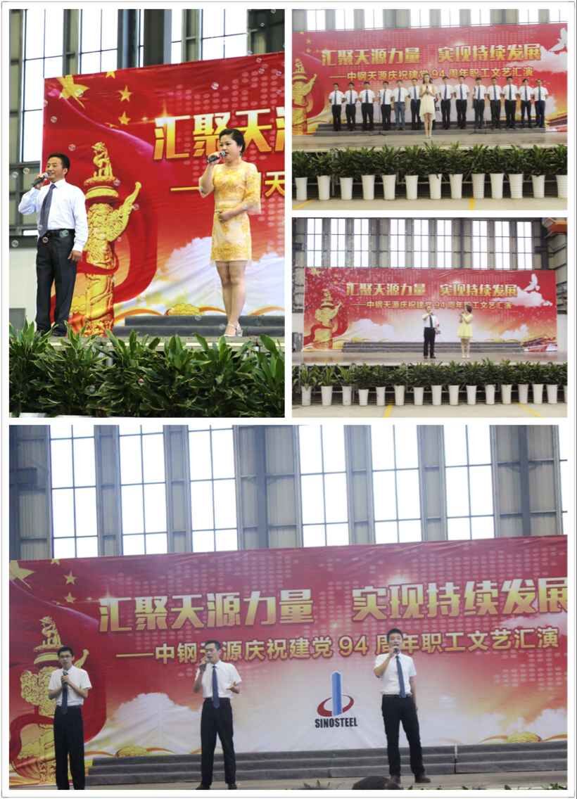 随后,文艺汇演在舞蹈《咱们工人有力量》中正式拉开序幕。歌曲《长江之歌》、《大中国》、《喀秋莎》等经典歌曲激发了全场观众爱国爱党的热情;深情并茂的诗朗诵《光荣与梦想》用感人至深的抒情诗带领观众回顾了公司成立13年来的峥嵘岁月,让在场的每一位观众为之动容;小品《致青春》、相声《满腹经纶》、《我要改行》、魔术双簧“笑果”不断,不时引起观众捧腹大笑;舞蹈《呼伦牧歌》把观众的思绪带回了蒙古大草原;广场舞《快乐给力》、《跳到北京》,爵士舞《BEST》展示了青春活力,瞬间点燃了观众的热情;黄梅戏《对花》让观众领略了黄梅戏的戏剧魅力;琵琶独奏《琵琶语》优美的旋律在燥热的夏季为观众送去了一丝清凉。最后,演出在全体人员共同唱响《没有共产党就没有新中国》的歌声中,在团结和谐、创新奋进、欢乐祥和的气氛中圆满落幕。