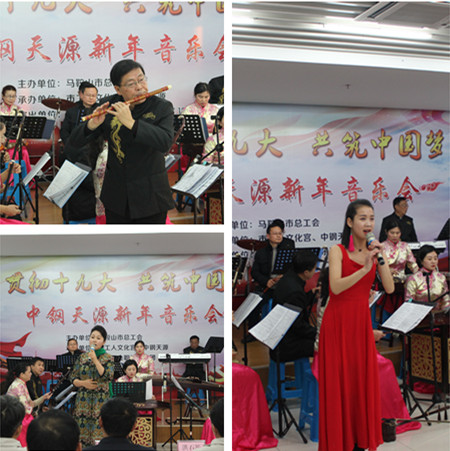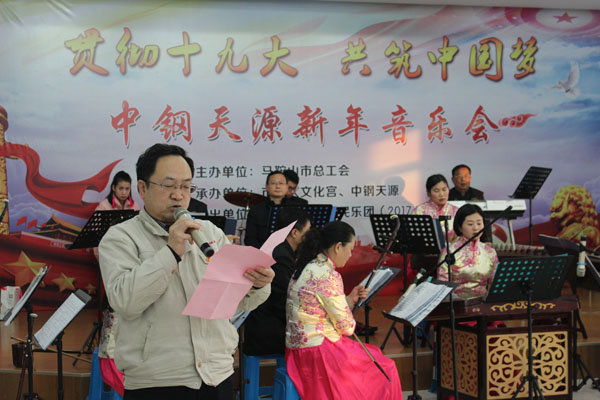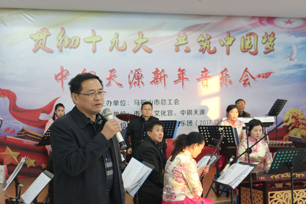 12月21日下午,由马鞍山市总工会主办、william威廉英国官网、市工人文化宫承办的“贯彻十九大、共筑中国梦”新年音乐会在公司第一培训教室隆重举行。市总工会党组书记、常务副主席李迅出席活动并讲话,william威廉英国官网常务副总经理张野、党委副书记、纪委书记、工会主席亚海斌、副总经理吴刚等出席活动,公司新区100多名员工到场聆听了音乐会。